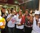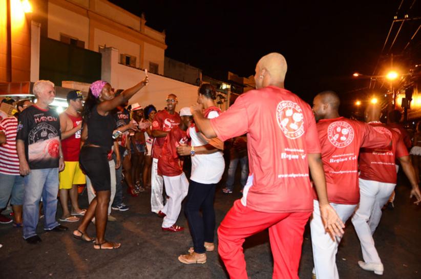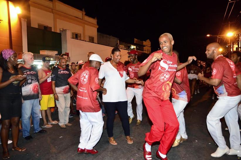 Queen Latifah esbanja simpatia em ensaio de rua de escola de samba