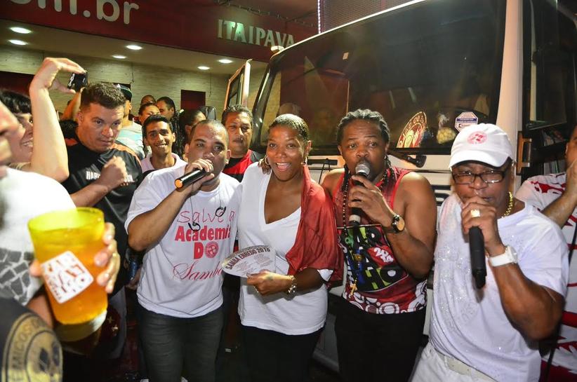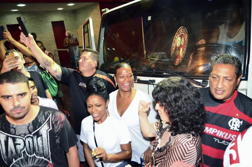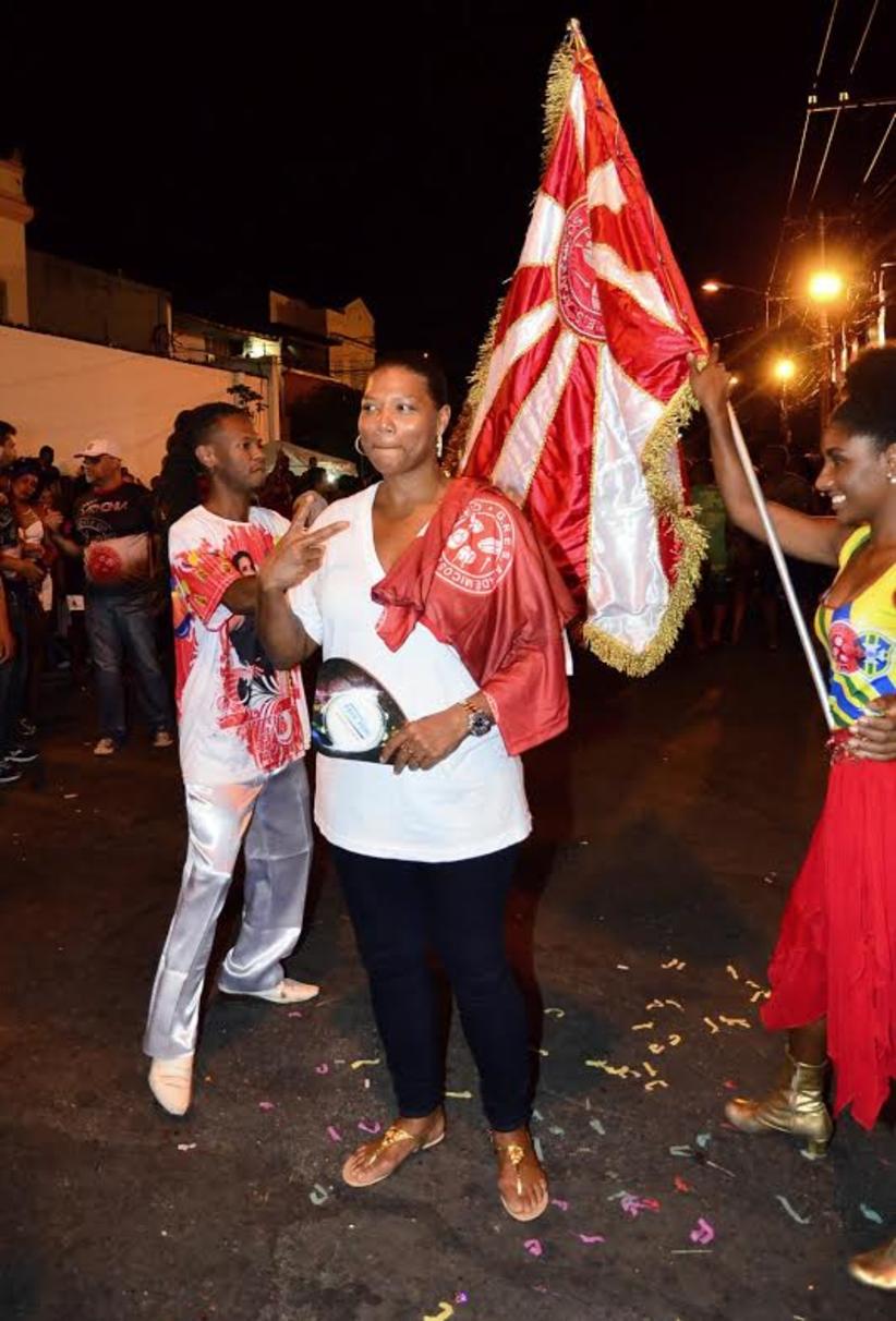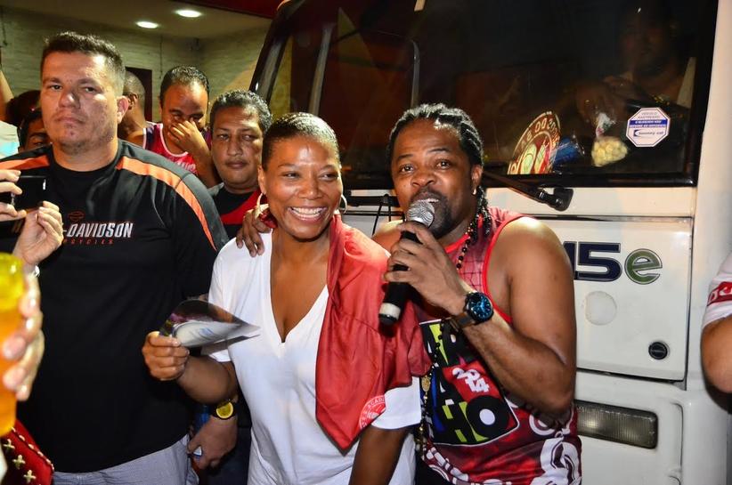 A atriz americana Queen Latifah está passando as férias no Rio de Janeiro e não tirou o sorriso do rosto durante o ensaio de rua da escola de samba Salgueiro.