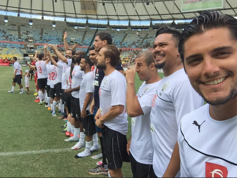 Wesley Safadão, José Aldo e vários outros famosos compareceram neste domingo, 27, para uma partida do Jogo das Estrelas, no Maracanã. O evento beneficente reuniu ex-jogadores, cantores, atores e lutadores e dividiu em times de equipe branca e vermelha. Entre os famosos do time Branco, estavam José Aldo, Bruno Gissoni, José Loreto, Ricardo Pereira, Iran Malfitano, Cássio Reis, Thiago Rodrigues, Bruno Coimbra (filho de Zico), Rafael Cardoso e Diogo Nogueira.