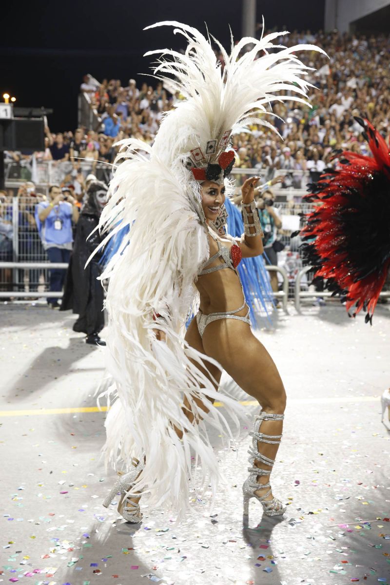 Defendendo a Gaviões da Fiel, ela veio à frente da bateria como madrinha da agremiação. Este é o 12º ano em que a personalidade desfila como membro da escola do Corinthians.