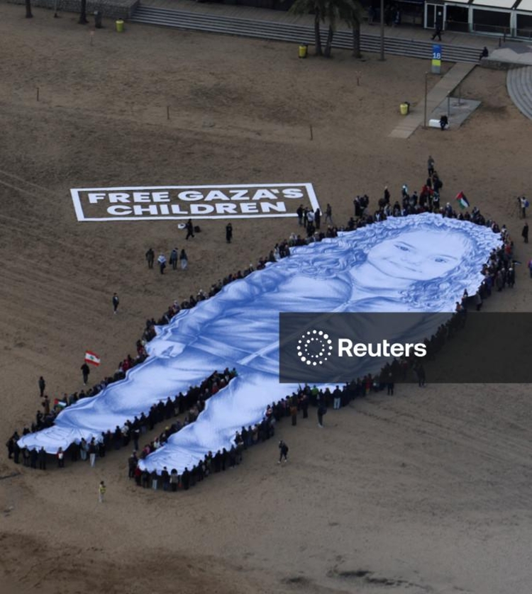 BARCELONA, 29 Jan (Reuters) - Manifestantes estenderam um retrato gigante da menina palestina Hind Rajab, que tinha cinco anos de idade, em uma praia de Barcelona nesta quinta-feira, dois anos após sua morte na guerra de Gaza, e sua mãe apelou para que a comunidade internacional preste atenção à situação das crianças de Gaza.