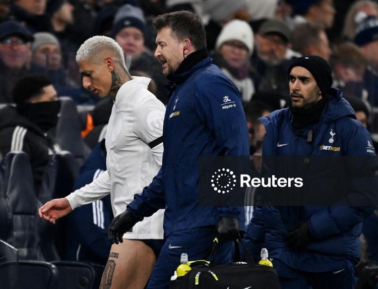 LONDRES, 15 Jan (Reuters) - O atacante Richarlison, do Tottenham Hotspur, ficará afastado do time por quase dois meses devido a uma lesão na coxa, informou o técnico Thomas Frank nesta quinta-feira, causando um golpe nas opções de ataque do clube antes do clássico londrino de sábado, em casa, contra o West Ham United.