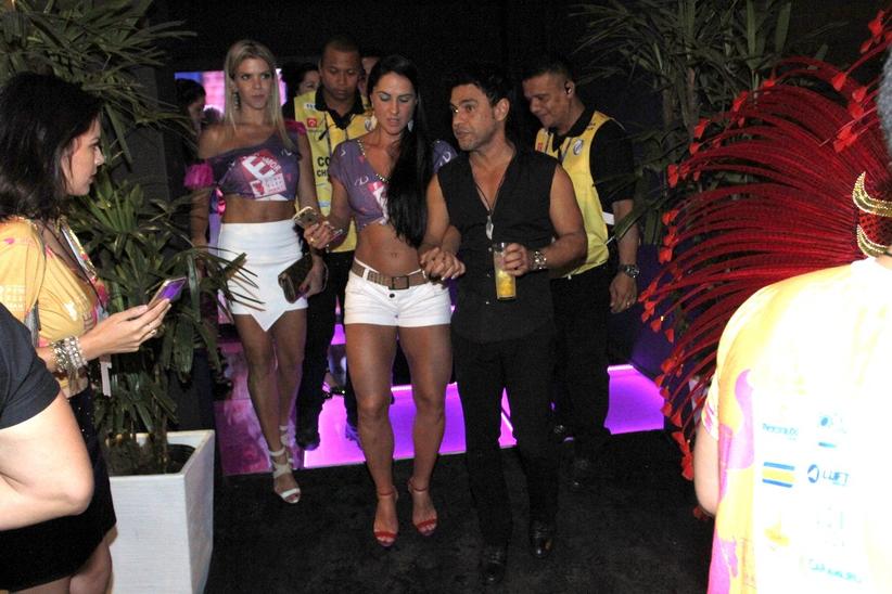 Graciele Lacerda chamou atenção ao lado de Zezé Di Camargo, em uma área VIP da Sapucaí. O casal chegou de mãos dadas e trocou muitos beijos no camarote, na madrugada do sábado, 6. Mas o que roubou a cena foi o figurino da morena, que surgiu com um abadá cortado, deixando a barriga de tanquinho à mostra, e os pernões malhados. O casal mostrou que está indo de vento em popa após as polêmicas de que Zezé teria probido a namorada de desfilar no Carnaval, pela agremiação que irá homenagear os Camargo.