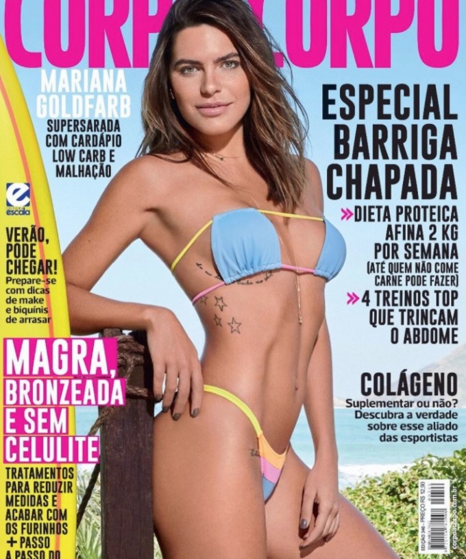 Mariana Goldfarb publicou uma foto saradíssima na capa da revista Corpo a Corpo deste mês, e mostrou que não precisou usar Photoshop no seu corpo, fazendo apenas um pequeno retoque na axila.