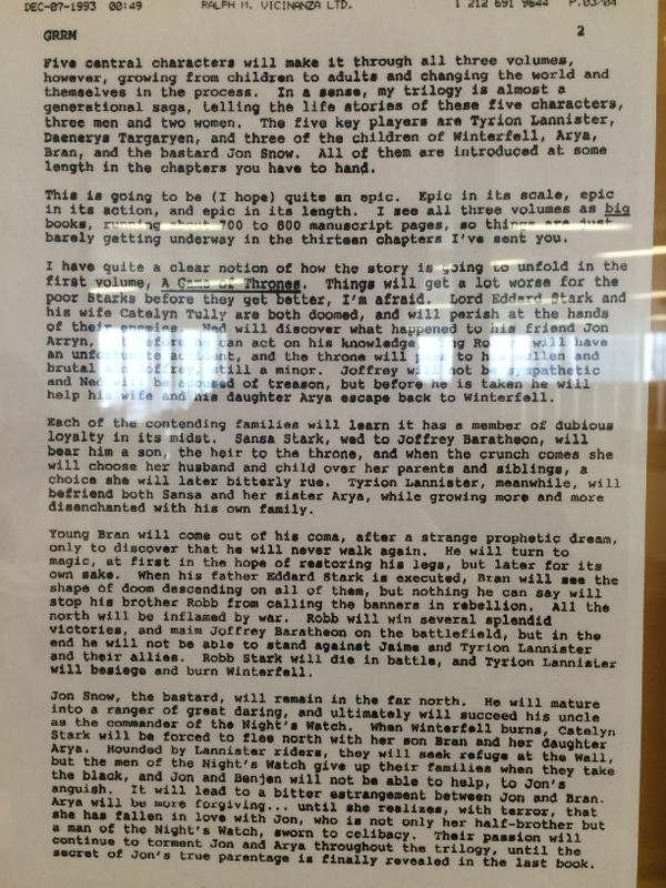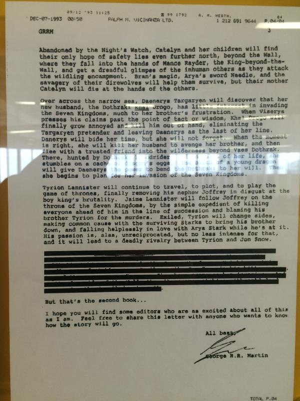 Carta do autor de Game of Thrones que vazou na internet e conta o final