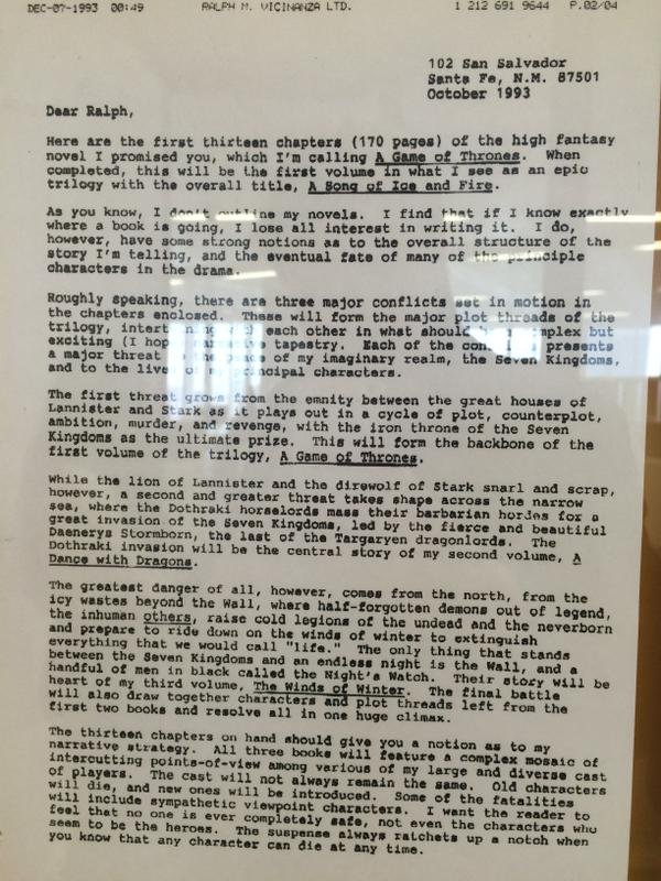 Início Carta do autor de Game of Thrones que vazou na internet e conta o final