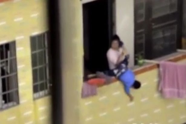 Um vídeo chocou os usuários de redes sociais nesta quarta-feira (8) flagrando uma mulher segurando o filho pelas pernas em uma varanda e ameaçando lançá-lo abaixo.