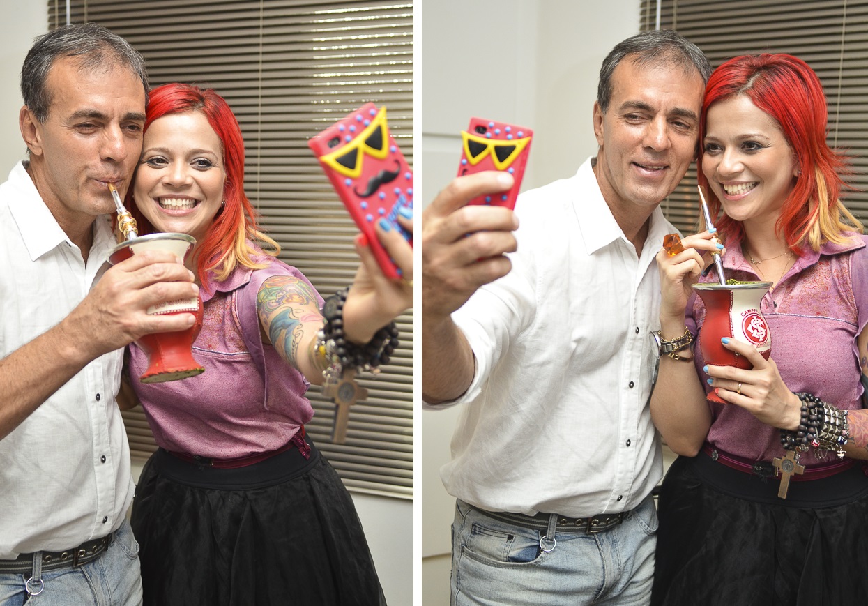 É vício mesmo, eu tomo todos os dias. (Daí foi preparar o chimarrão, me explicou de qual erva é feita e ainda conta um causo engraçado envolvendo a camisinha do bocal e uma empregada, ri muito. Eu provei o chá... pra ser sincera colocaria açúcar, mas daí não seria um chimarrão genuíno. O gosto é amargo!).