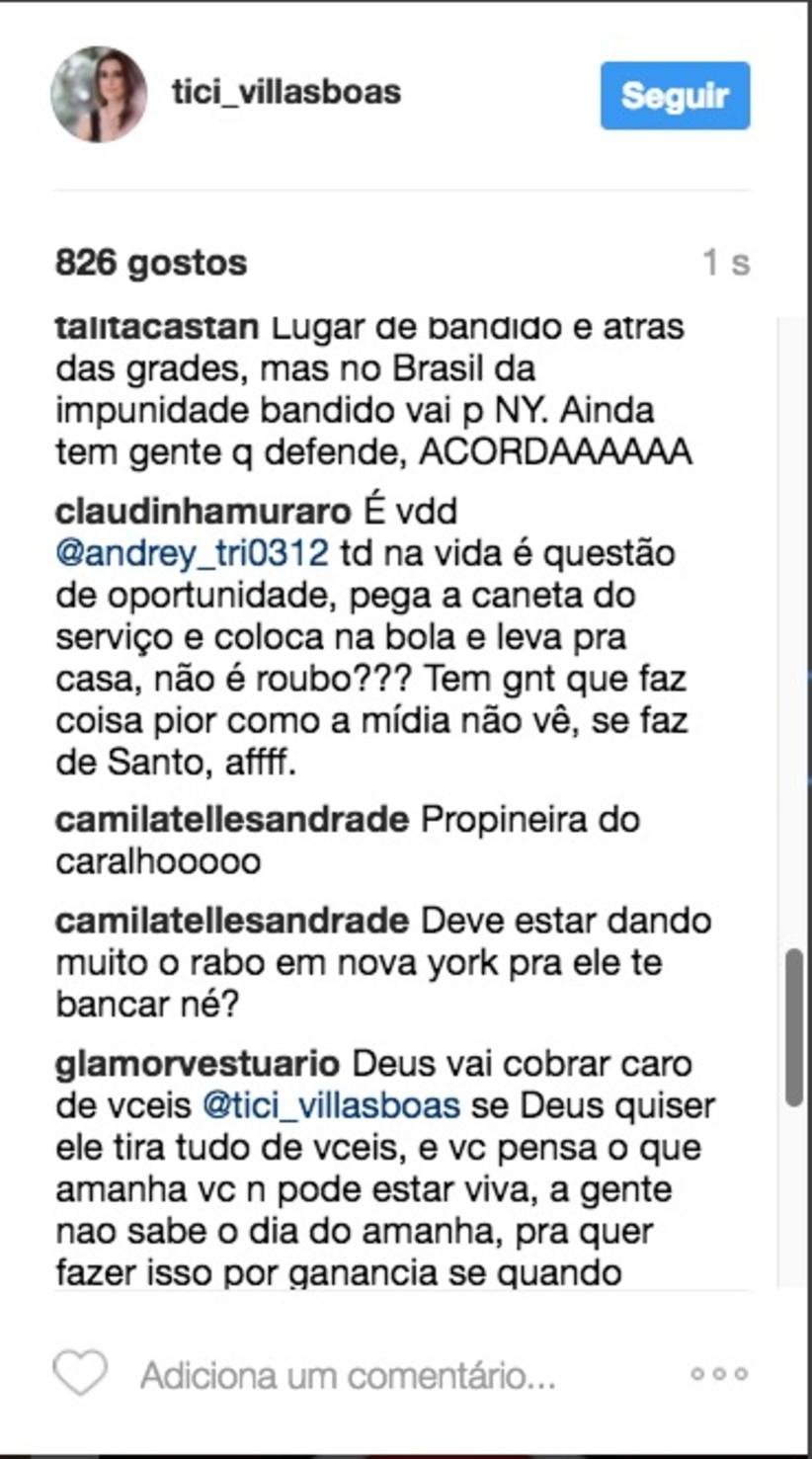 “Nunca terá a elegância de uma honesta”, disse uma internauta. “Que feio heim! Lixos, enriquecendo às custas do povo!”, disse outra pessoa. “Ta fugida linda?”, ironizou uma seguidora.