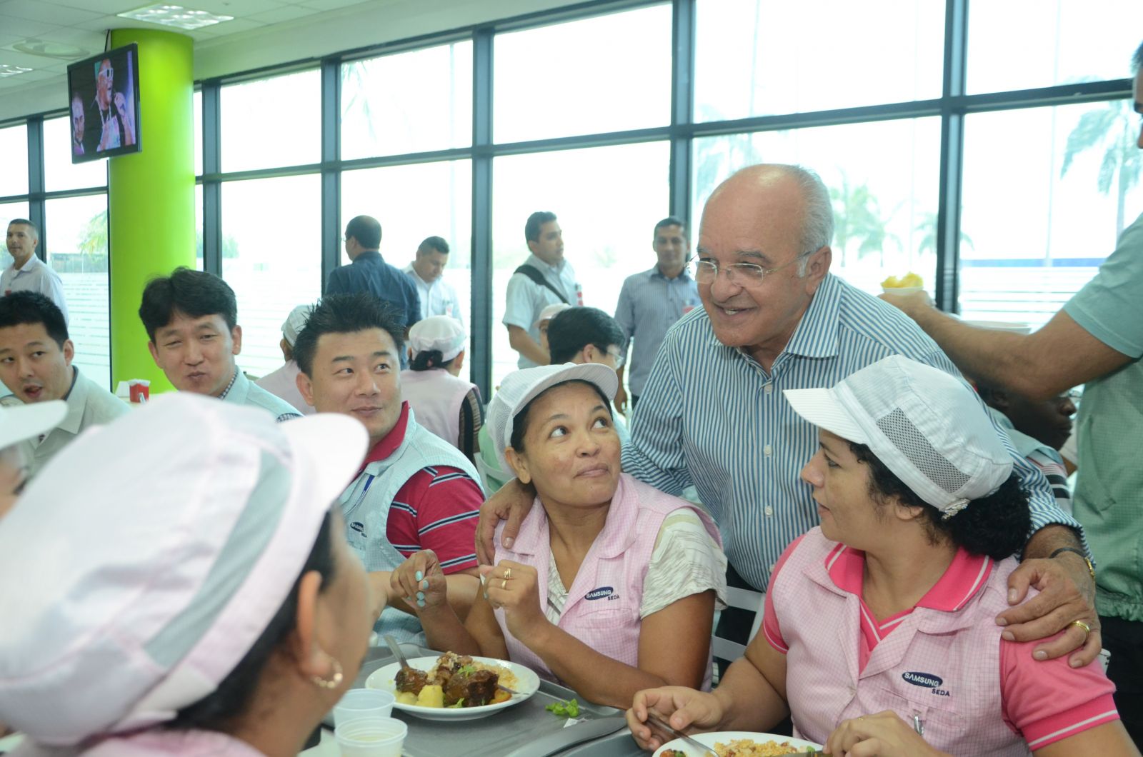 Em nova visita a trabalhadores do Polo Industrial de Manaus, o governador e candidato à reeleição José Melo (Pros) almoçou com funcionários da empresa Samsung, nesta quinta-feira, dia 4 de setembro. Recebido pelo presidente da multinacional em Manaus, Chunjae Lee, Melo conheceu o showroom de produtos, visitou as instalações e as linhas de produção e conversou com os trabalhadores para apresentar suas propostas.
