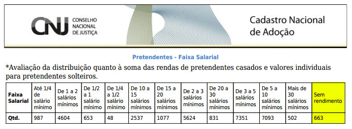663 pessoas sem nenhum tipo de renda desejam adotar uma criança ou adolescente