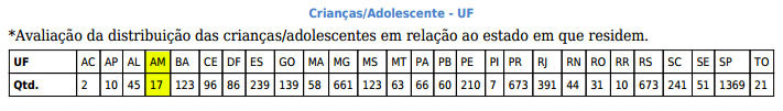 Apenas 17 crianças/adolescentes foram disponibilizadas para a adoção. E 73 pessoas estão habilitadas para adotar crianças no estado do AM.