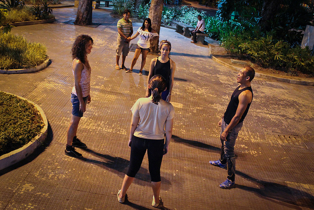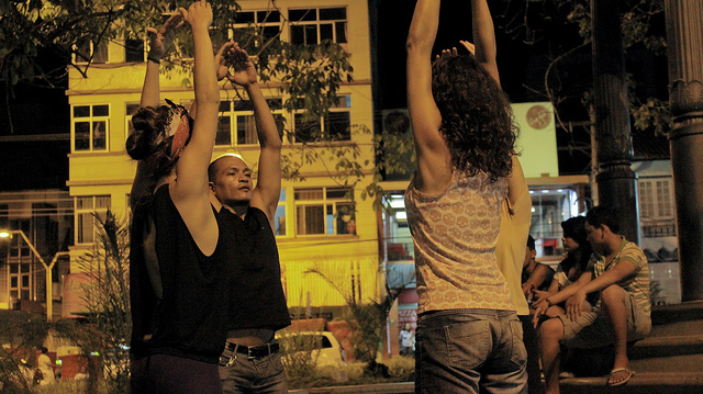 Prestes a completar vinte dias que estão na cidade, as bailarinas Milianie Lage Matos e Mab Cardoso, junto com os artistas amazonenses Ana Carolina de Souza e Odacy de Oliveira, acertam os últimos detalhes da apresentação que vem sendo construída por meio da realização de oficinas de dança e performance, vivências a partir de experiências com a cultura amazonense e trocas de experiências entre os integrantes do projeto e artistas locais.