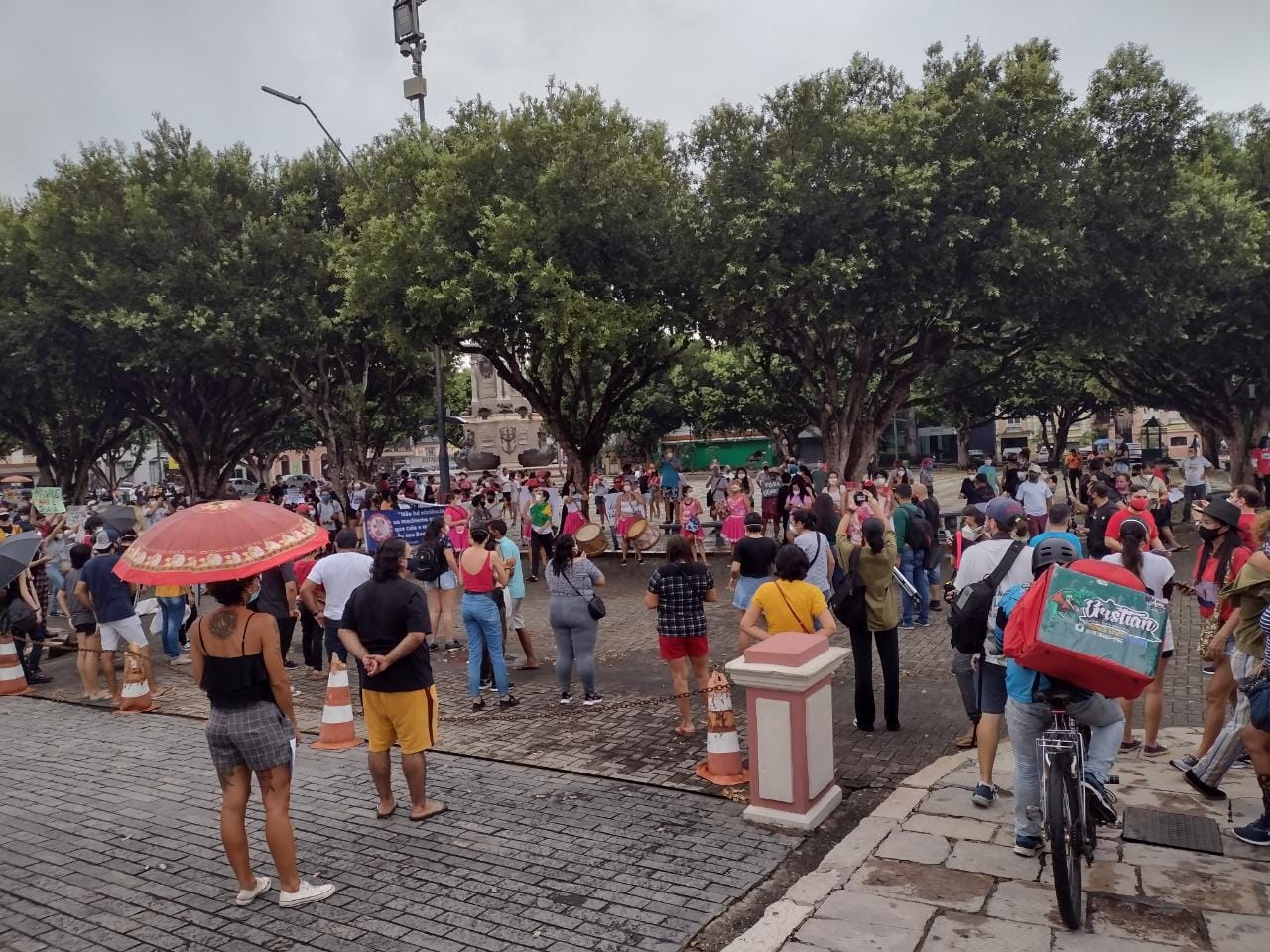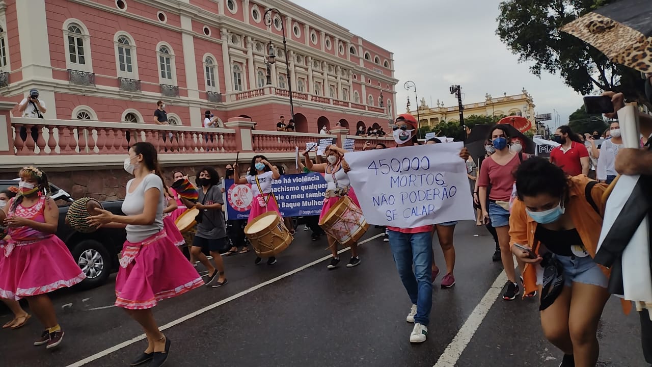 Manaus/AM - Manifestantes marcaram presença no protesto contra o governo Jair Bolsonaro neste sábado (29) em Manaus. Os atos contra a gestão de Bolsonaro na pandemia ocorrem em todo o Brasil. A manifestação teve início na Praça da Saudade, no Centro de Manaus, passando por algumas das principais avenidas da cidade, com passeata terminando no Largo do São Sebastião, em frente ao Teatro Amazonas.