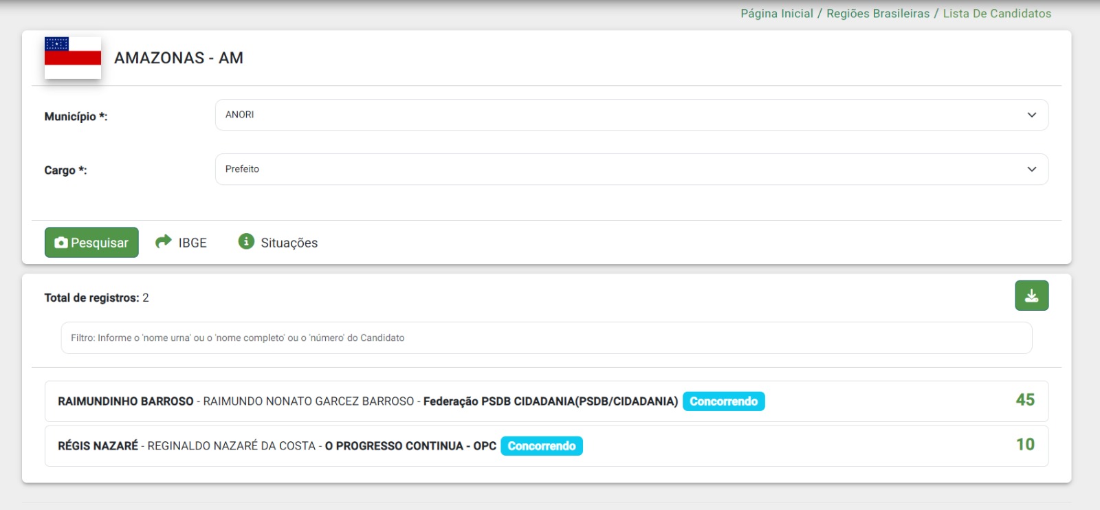 Manaus/AM - O prefeito Régis Nazaré (Republicanos), que busca a reeleição em Anori, a 194 quilômetros de Manaus, seria o único candidato no pleito deste ano. No entanto, no último dia do prazo, o empresário Raimundinho Nonato registrou a candidatura no Tribunal Regional Eleitoral (TRE-AM).