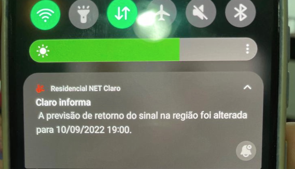 Manaus/AM - A Claro enviou mensagem para alguns de seus assinantes neste sábado (10) informando o horário previsto para retorno do sinal de internet em Manaus. A cidade sofreu um apagão de serviços por várias operadoras na tarde de hoje, algumas já retornaram, como o sinal da TIM.