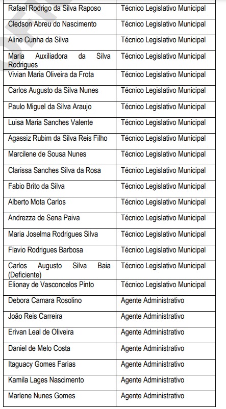 Manaus/AM - A Câmara Municipal de Manaus, divulgou nesta sexta-feira (29), em Diário Oficial, a nomeação dos candidatos aprovados em Concurso Público, Edital n.º 01/2003, para o Quadro de Pessoal Efetivo da CMM.