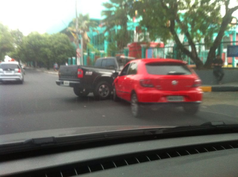 Dois carros - um gol e uma picape - colidiram na manhã dsta segunda-feira, por volta de 7 horas, na avenida Paraiba, em frente supermercado DB. Ninguém ficou ferido. O motorista da Picape assuniu a culpa pelo acidente ao fazer o retorno e ser atingido pelo Gol.