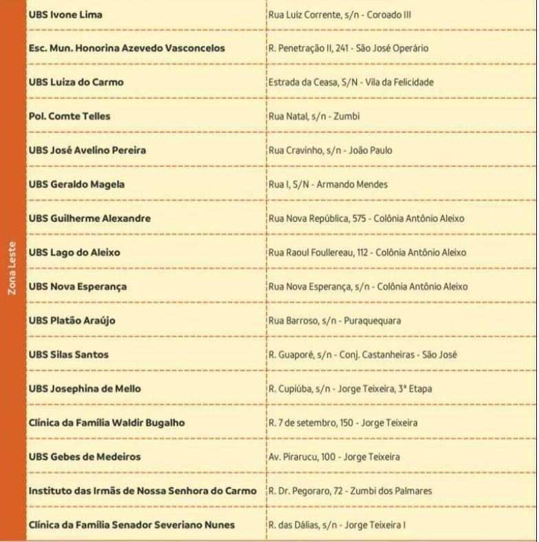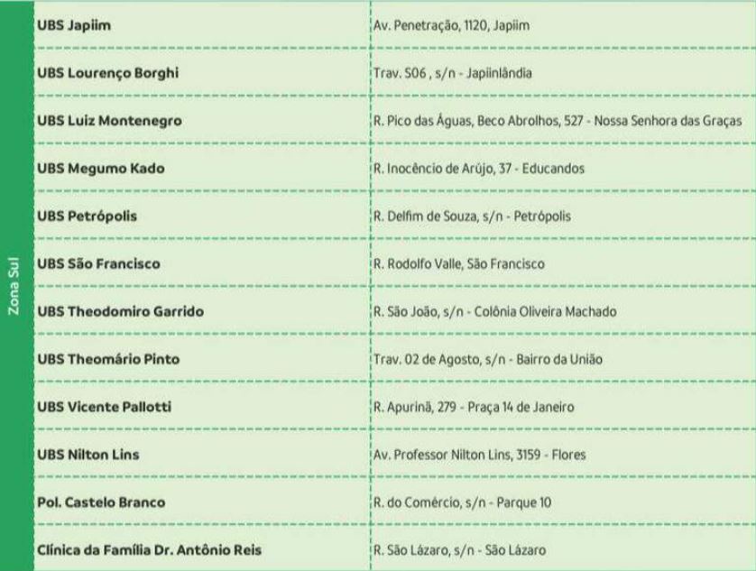 Os demais são UBSs, policlínica e escolas que estão divididas por zonas, confira: