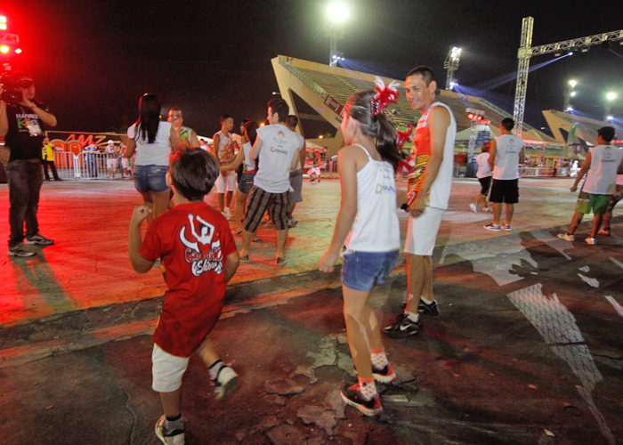 O torcedor do Garantido, Willian da Silva, trouxe sua família para comemorar o aniversário da cidade. Sua filha, a pequena Hilary de apenas quatro anos já é veterana do Boi Manaus.