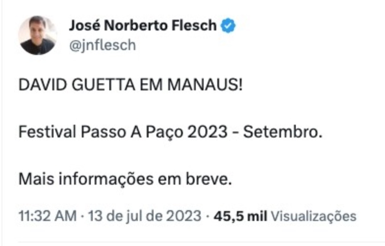Contudo, a própria prefeitura realizou publicações nas redes sociais que apontavam que a mega-atração seria David Guetta. No final das contas, o prefeito afirmou que ainda está negociando com uma atração internacional para o evento e que deve ser um artista pop ou do eletrônico.