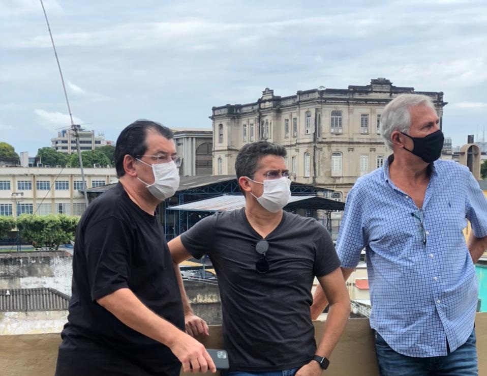 Bola das Letras ─ Depois da conversa com David Almeida, Eduardo Braga visitou as obras de revitalização da praça Bola das Letras “Humberto Calderaro”, no bairro Dom Pedro, zona Centro-Oeste de Manaus, acompanhado do secretário de Limpeza Pública, Sabá Reis, e do ex-deputado Humberto Michilles. “Fico muito feliz em ver a Bola das Letras sendo revitalizada, nesse período que as pessoas vão precisar de espaços de qualidade”, disse Braga.