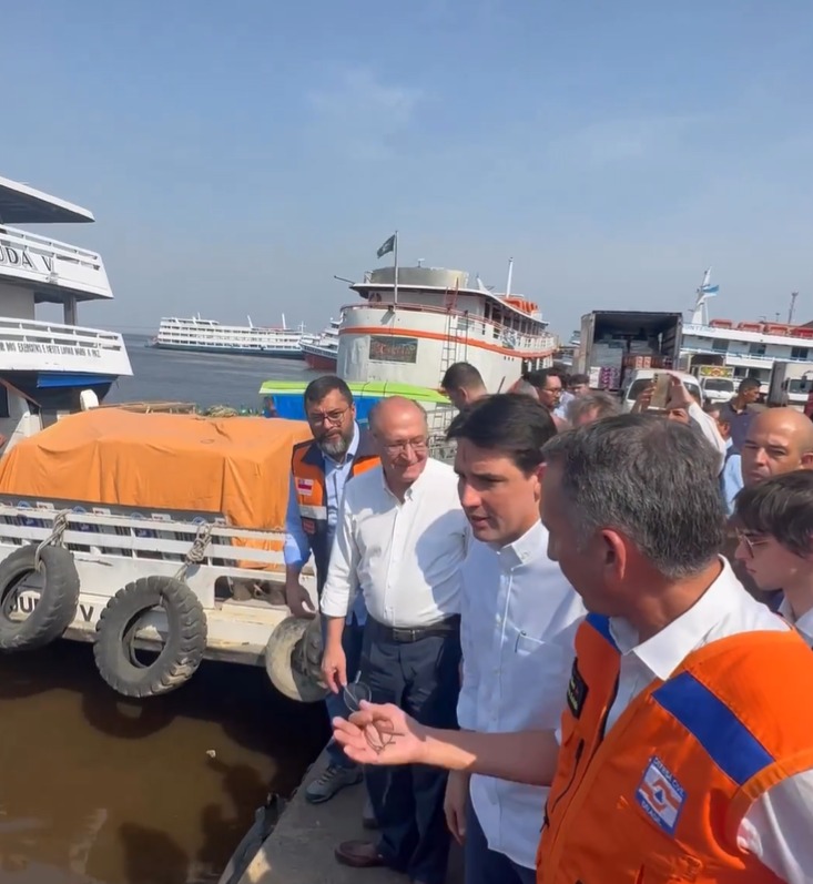 Manaus/AM - O vice-presidente Geraldo Alckmin (PSB) e ministros do Governo Federal estão em Manaus para avaliar o cenário da seca histórica que atinge o Amazonas em 2023. Nesta manhã (4), logo após sua chegada a capital amazonense, Alckmin e os ministros estiveram no Porto de Manaus, onde foram verificar o nível do Rio Negro.