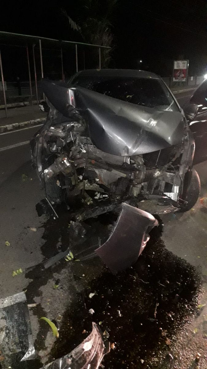Manaus/AM - Um carro ficou destruído ao arrancar uma árvore durante um acidente ocorrido na madrugada deste domingo (9), na avenida Coronel Teixeira, no bairro Ponta Negra, Zona Oeste, nas proximidades de um supermercado.