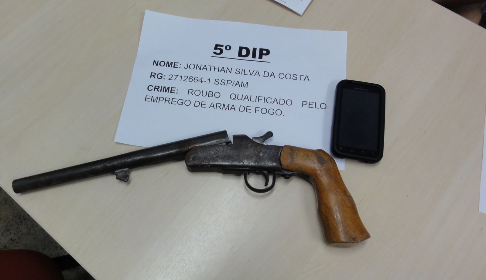 Após o roubo, o motorista do coletivo acionou a viatura da polícia e descreveu todas as características do suspeito. Após a denúncia, policiais seguiram até o local indicado pelo mesmo e abordarem o suspeito, ele confessou o assalto e foi encaminhado ao 5º DIP, onde foi autuado em flagrante por roubo e pelo emprego de uso de arma de fogo.