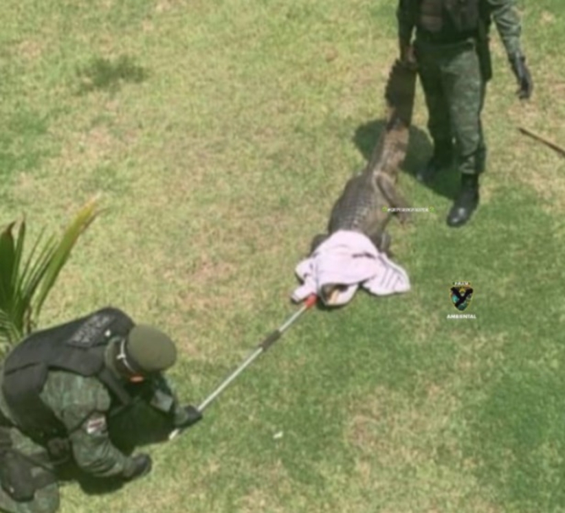 O jacaré que tem pouco mais de um metro foi recolhido pelos profissionais e levado para uma área segura, onde foi devolvido ao seu habitat natural.