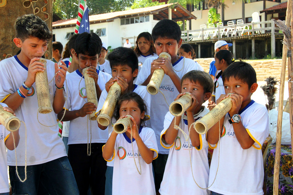 Aproximadamente 500 alunos do 1º ao 9º ano do ensino fundamental de cinco escolas municipais localizadas na zona rural participaram dos Jogos Interculturais Indígenas, no Recanto do Curió, no Tarumã Açu, zona Oeste da cidade.