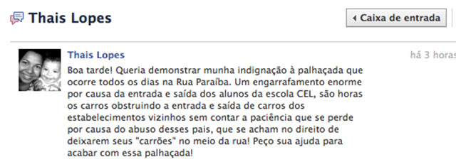 A leitora Taís Lopes enviou reclamação à redação do Portal do Holanda. Segundo ela, há desorganização na portaria da escola CEL, localizada na Av. Paraíba. Ali, segundo Taís, os veículos que param para buscar os filhos na escola congestionam a avenida e impedem a circulação de carros nos estabelecimentos vizinhos.