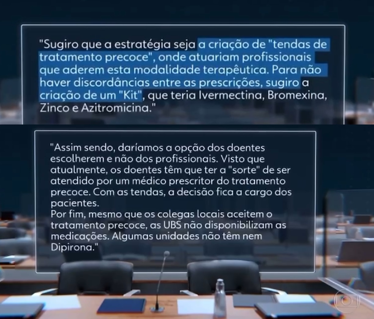 Há relatos da criação de tendas paralelas para burlar a orientação de médicos contra o tratamento sem eficácia, com prescrição e disponibilização de "kit covid". E ainda, um vídeo divulgado nesta quarta-feira (21), mostra o treinamento secreto que Mayra Pinheiro fez para depor na CPI da Covid.