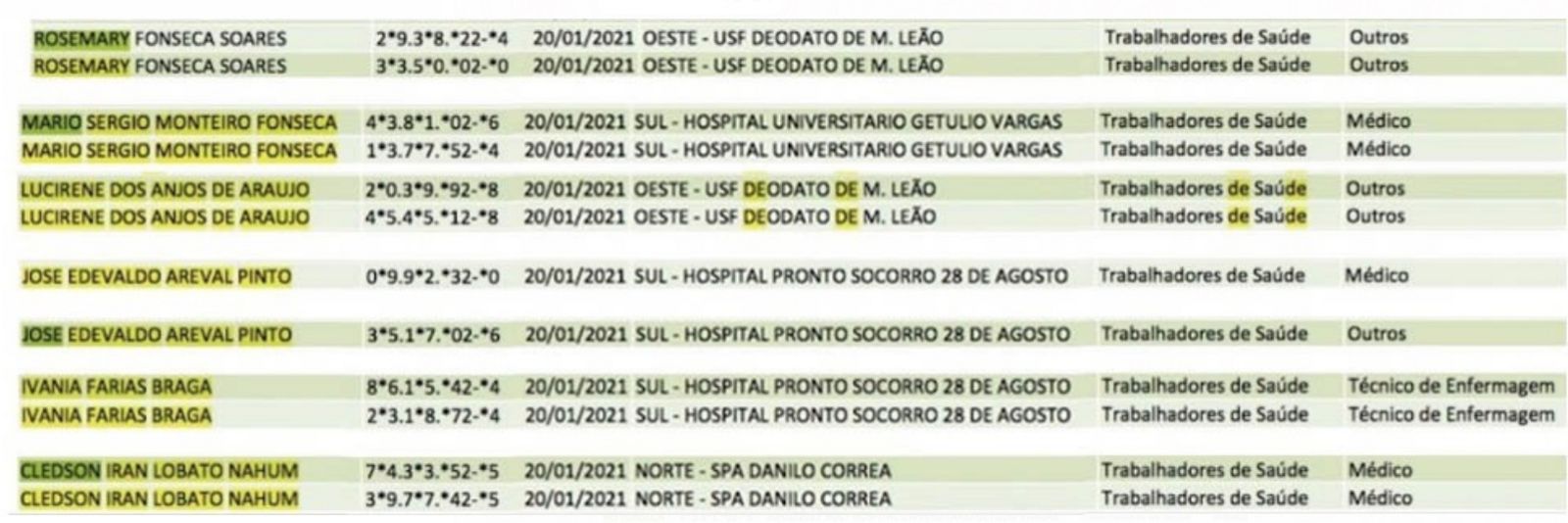 Manaus/AM - A lista oficial com os nomes parciais dos vacinados pela Secretaria Municipal de Saúde (Semsa) contém nomes repetidos.