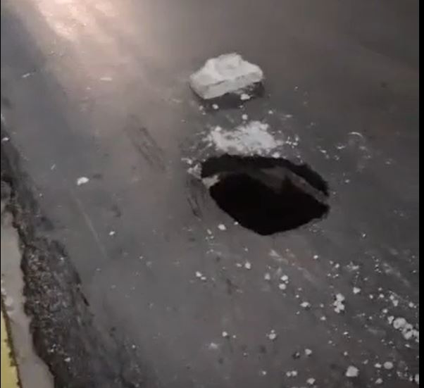 A Prefeitura enviou profissionais ao local e constatou que o buraco não foi causado por problemas na rede de drenagem, mas por vazamento no material da própria pista.