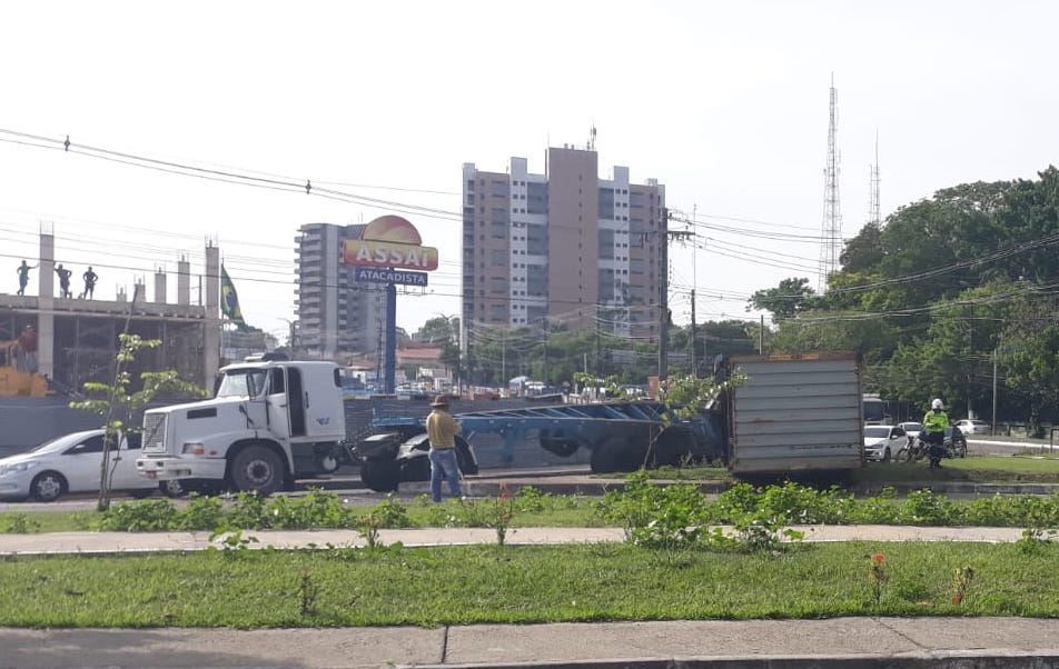 Manaus - Outro caminhão Porta Container tombou na manhã desta quarta-feira (6) e congestionou o trânsito em Manaus. O acidente aconteceu na avenida Amine Lindoso, no bairro Aleixo, zona sul. Mais cedo uma carreta também tombou na Bola do Produtor, na zona leste.