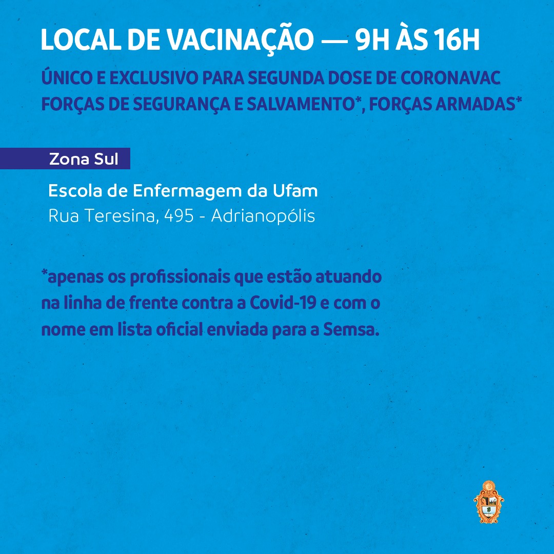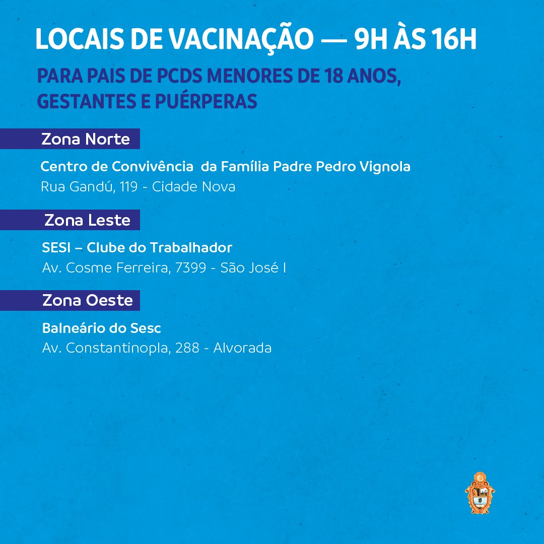 Manaus/AM - Os Postos de vacinação da capital retomam nesta terça-feira (15), a imunização da primeira dose para a população de 40 a 51 anos e pais de pais de PCDs que tenham menos de 18 anos.