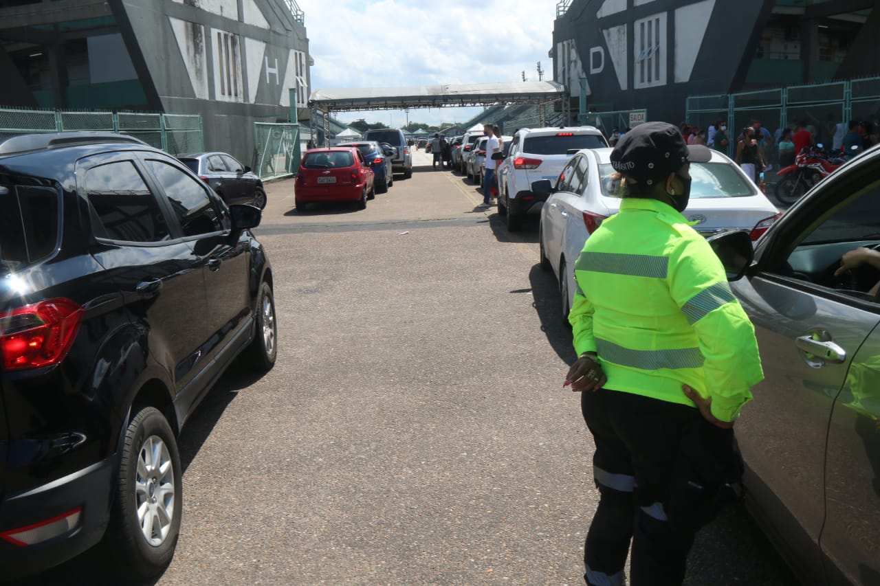 Manaus/AM - Com retomada da vacinação contra covid nesta terça-feira (22) após ser suspensa por um dia, uma enorme fila se formou na Avenida Pedro Teixeira, em frente ao Sambódromo, na Zona Centro-Oeste de Manaus.