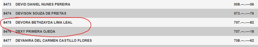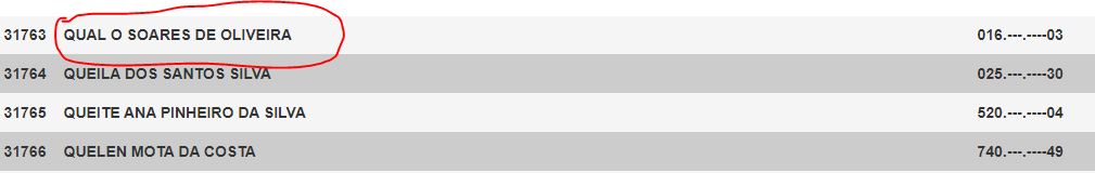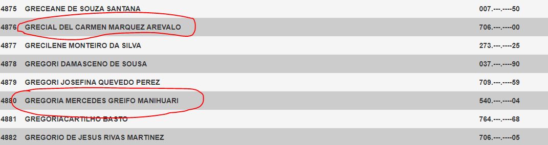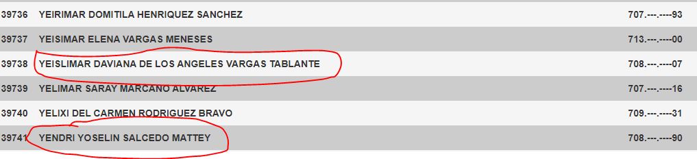 Entre os mais chamativos estão: Qual o, Cristima Email, Lima22, Eglys Norelis, Regulo Reategui, Dubraska Susarregui, Inhuma Chota, Devora e muito mais. Confira a lista abaixo: