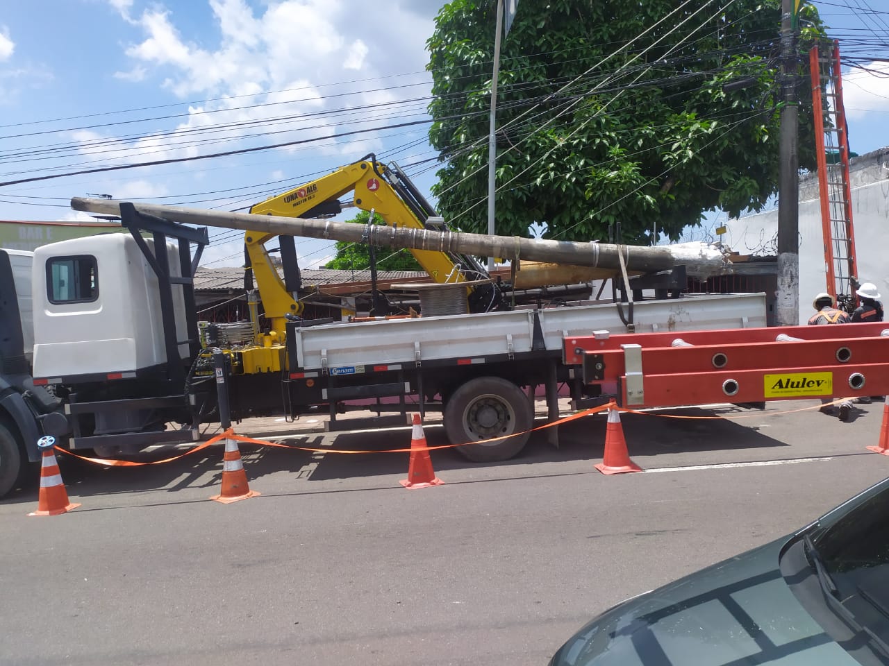 Manaus/AM - O acidente que derrubou dois postes de energia na manhã desta segunda-feira (26), na avenida Brasil, está causando a maior confusão no trânsito no trecho que dá acesso aos bairros Ponta Negra e Santo Agostinho, na Zona Oeste.