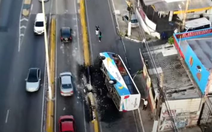 O transporte colidiu com a mureta divisória na pista e chegou a ter uma das rodas arrancadas com o impacto.