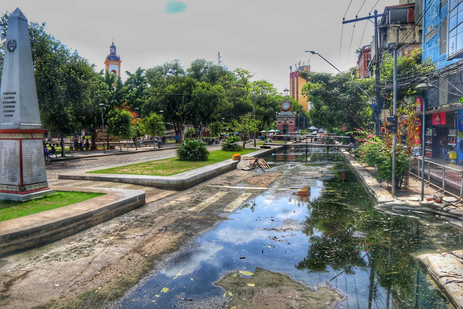 Na manhã de hoje (12), as ruas que ficam no entorno da Praça da Matriz, amanheceram quase secas e as pistas que estavam submersas já estavam à mostra e prontas para passarem por processo de recuperação.