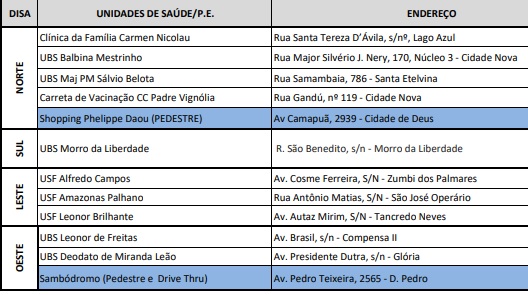 Veja o endereço dos pontos de vacinação abaixo: