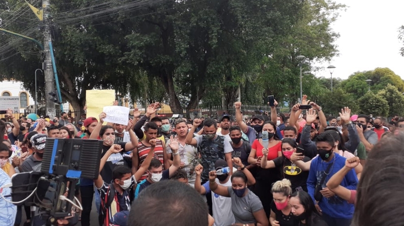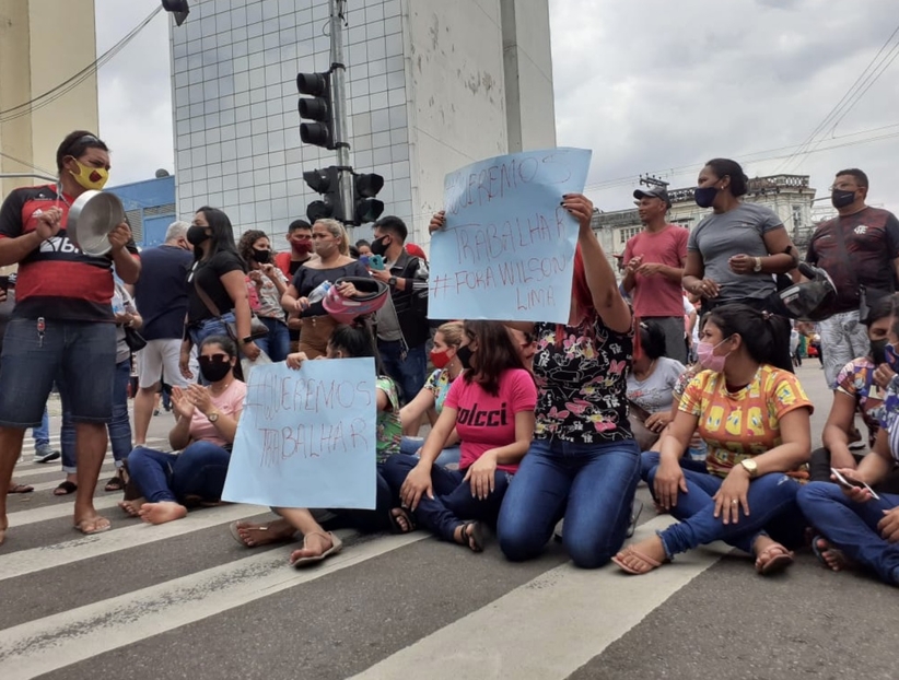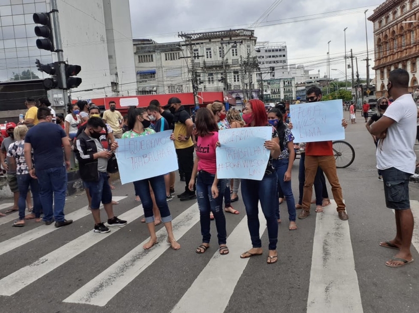Os manifestantes bloquearam ruas, hostilizaram repórteres e gritam “queremos trabalhar” e “Fora, Wilson Lima”.