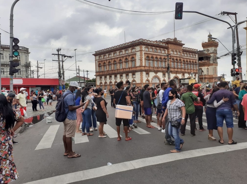 Manaus/AM - Centenas de pessoas continuam o protesto contra o fechamento do comércio no Centro de Manaus. Aglomerados e muitos sem máscaras, comerciantes pedem a revogação do decreto do Governo do Amazonas.