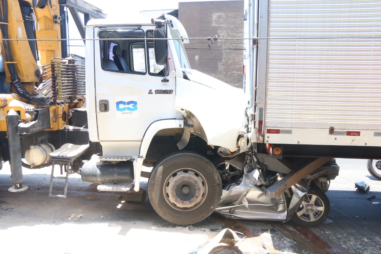 - Carro é esmagado entre caminhão e carreta em acidente em Manaus