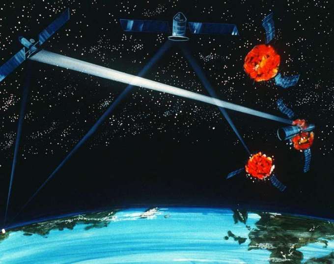 Embora os comentários de Richard e Goldfein pareçam ter surgido do além, existe uma longa história de políticas, e ações, sobre a guerra espacial. Em 1967, no começo da corrida espacial, o Tratado do Espaço, das Nações Unidas, baniu o uso de armas nucleares ou outras armas de destruição em massa de serem usadas de qualquer lugar no espaço. Mas isso não impediu as potências da Guerra Fria de propagarem a ideia de que uma guerra espacial estava próxima. Em 1983, o presidente Ronald Reagan introduziu a Strategic Defense Initiative (SDI), também conhecida como Guerra nas Estrelas, que foi um plano para lançar um sistema de mísseis antibalísticos ao espaço para proteger os americanos de um ataque soviético. Os russos similarmente brincaram com a ideia de criar “satélites suicidas”, que eram essencialmente naves espaciais com canhões acoplados. Como o SDI, a ideia foi descartada.