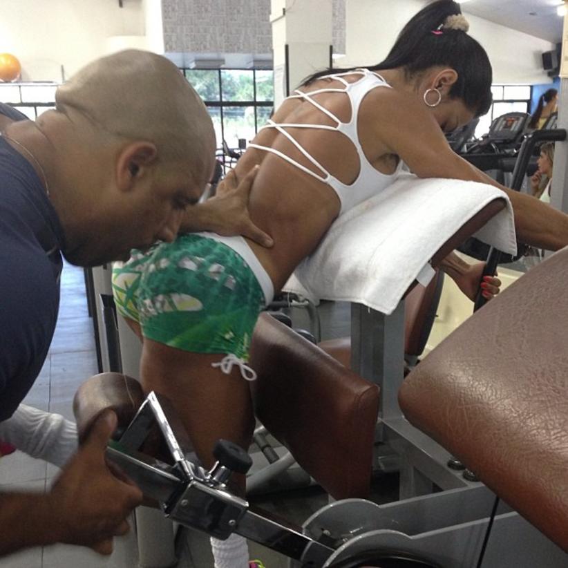 Seja durante a semana ou final dela, com ou sem feriado, Gracyanne Barbosa não larga a academia. Dona de um corpo super musculoso, a esposa de Belo só quer saber de ficar cada vez mais forte.