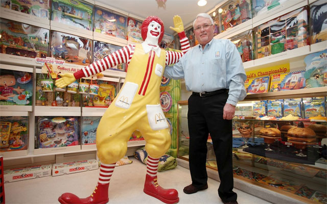 Mike Fountaine é, visivelmente, apaixonado pelo McDonalds. O americano tem uma coleção de memorabilia de itens da lanchonete de dar inveja: são, aproximadamente, 75 mil peças. O homem tem um item de praticamente todos os itens que já foram fabricados.