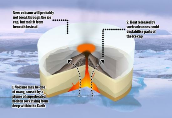 Uma erupção sub-glacial seria capaz de derreter o gelo, criando grandes quantidades de água que poderiam ir em direção ao mar, acelerando o fluxo marinho e aumentar potencialmente a perda dos blocos de icebergs.